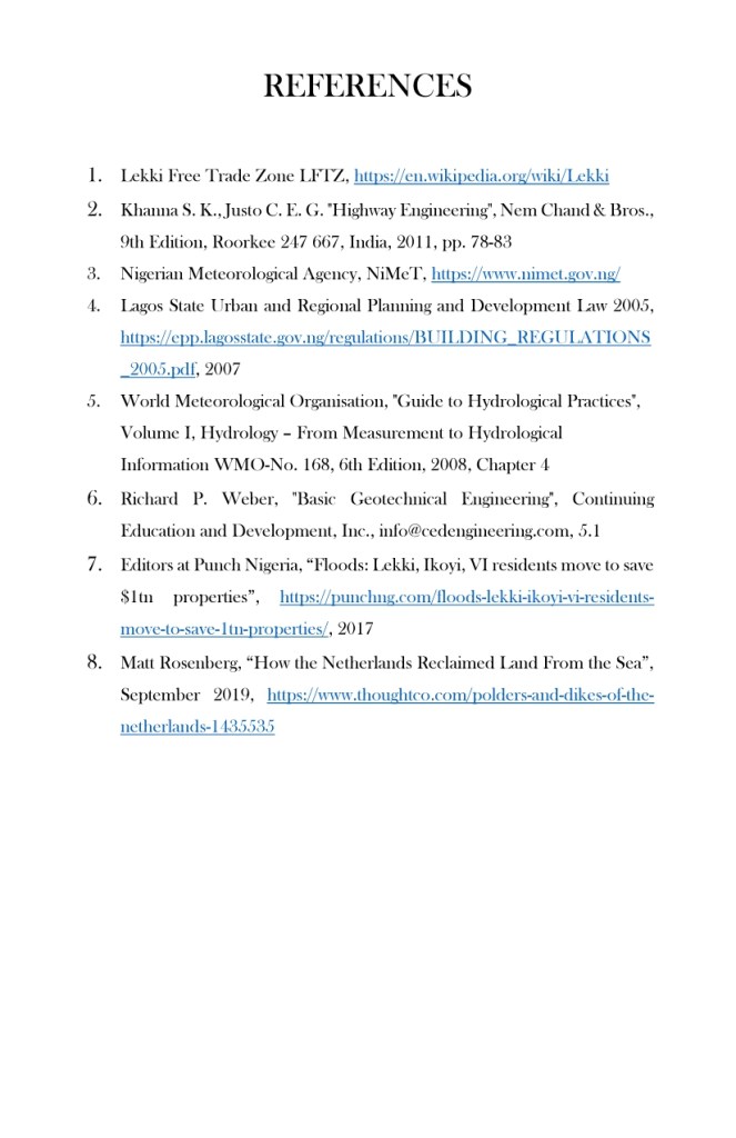 During a persistent rain, there are times when there is a temporary flood for up to 4 hours, this flooding is a result of the capacity of the drainage infrastructure being insufficient. The total volume of runoff water left to drain along the ground surface are hydrological parameters which need to be provided by engineers. These hydrological parameters are what is used in the design of the sizes of drainage cross-sections and profiles. Temporary inundations of this nature could affect visibility on the roads and could be embarrassing when it occurs in highbrow geographical locations.