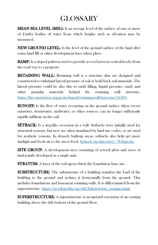 - The height of the finished level of the proposed roads within the site should be established in conjunction with Local governing authorities involved in town planning.