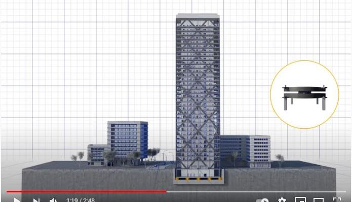 Photo showing animation of pendulum bearings used on a building to withstand the effects of an earthquake