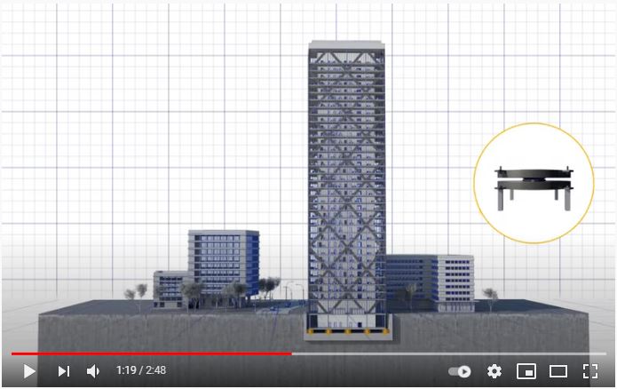 The following is an animation of earthquake response of a multistory building with installed bearings at the substructure interface: