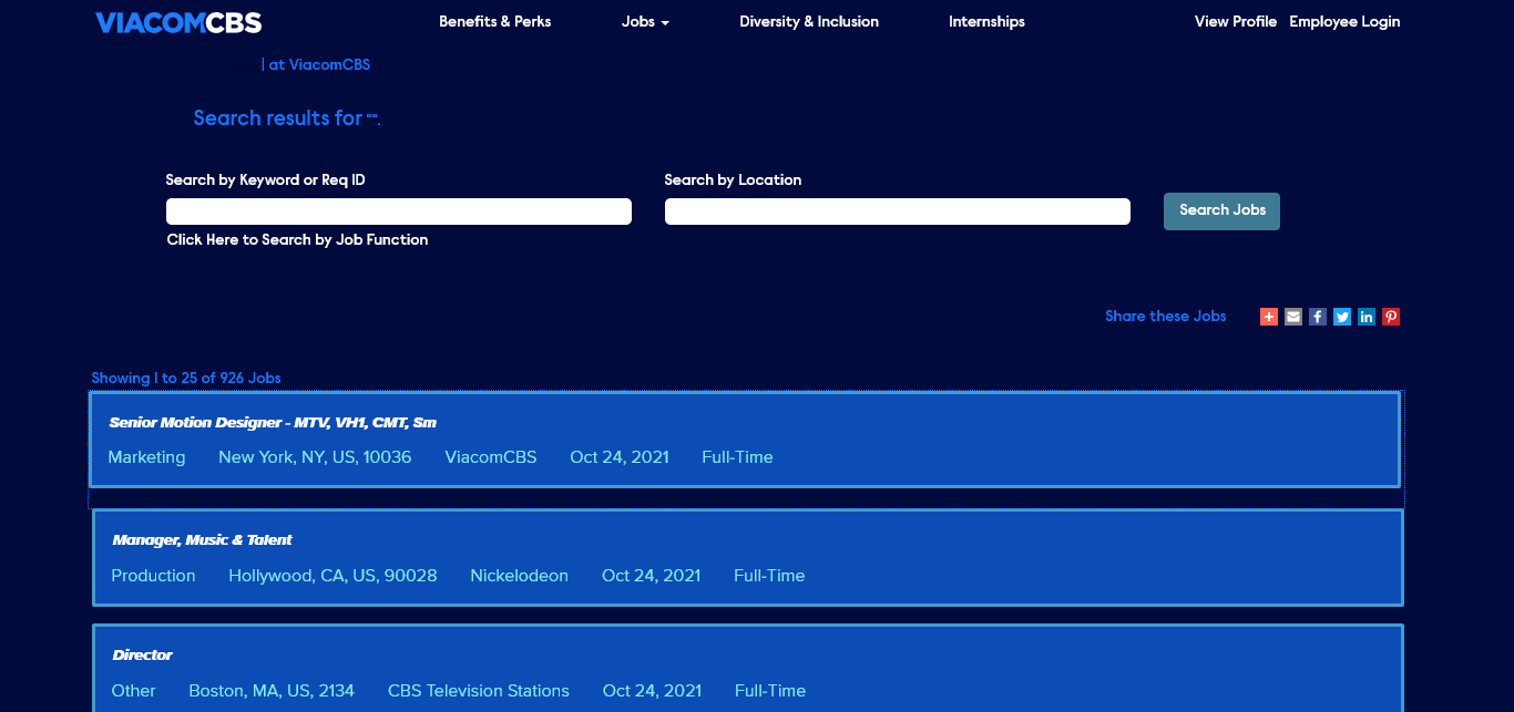 Viacom CBS 926 https://careers.viacomcbs.com/search/?createNewAlert=false&q=