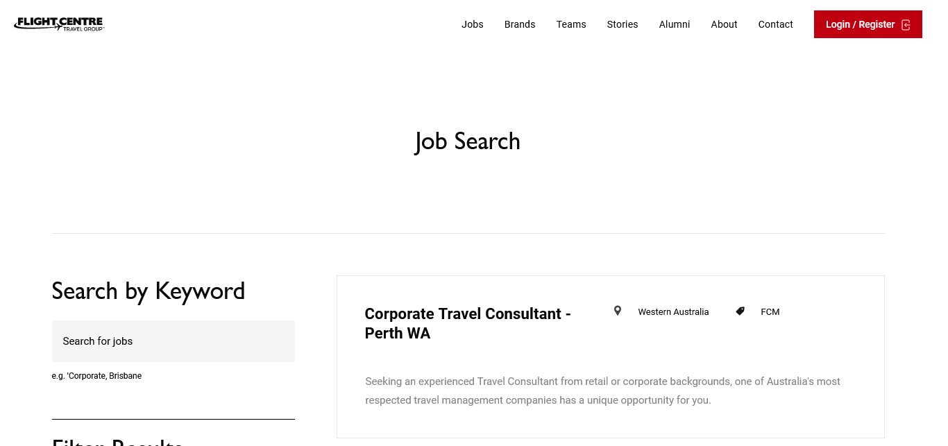 Flight Centre Travel Group 260 https://careers.fctgcareers.com/cw/en/listing/?_ga=2.167017981.297146576.1633688054-1226246167.1633688054