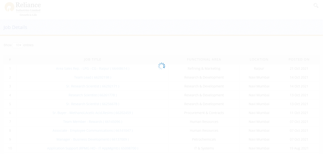 Reliance Industries Ltd 15 https://careers.ril.com/frmJobSearch.aspx?func=w+cpdiT6wL4=&loc=/wASbQn4xyQ=&expreq=/wASbQn4xyQ=&flag=/wASbQn4xyQ=