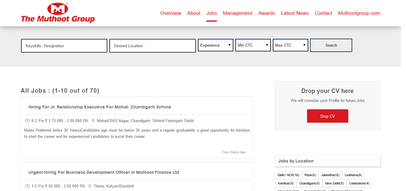 Muthoot Finance Ltd 70 http://careers.muthootgroup.com/jobs/
