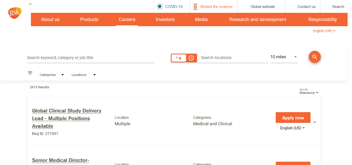 GlaskoSmithKline 2660 https://jobs.gsk.com/en-gb/jobs?page=1