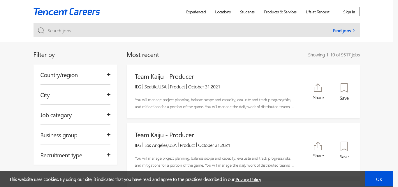 Tencent Holdings Limited 9571 https://careers.tencent.com/en-us/search.html