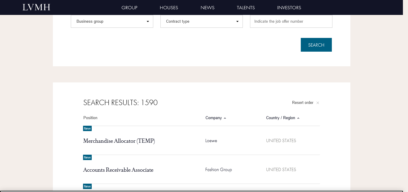 LVMH Moet Hennessy Louis Vuitton SE 36 https://www.lvmh.com/talents/work-with-us/job-offers/view-our-current-opportunities/?job=&place=8055&experience=&activity=&contract=&reference=#gt_offers-results
