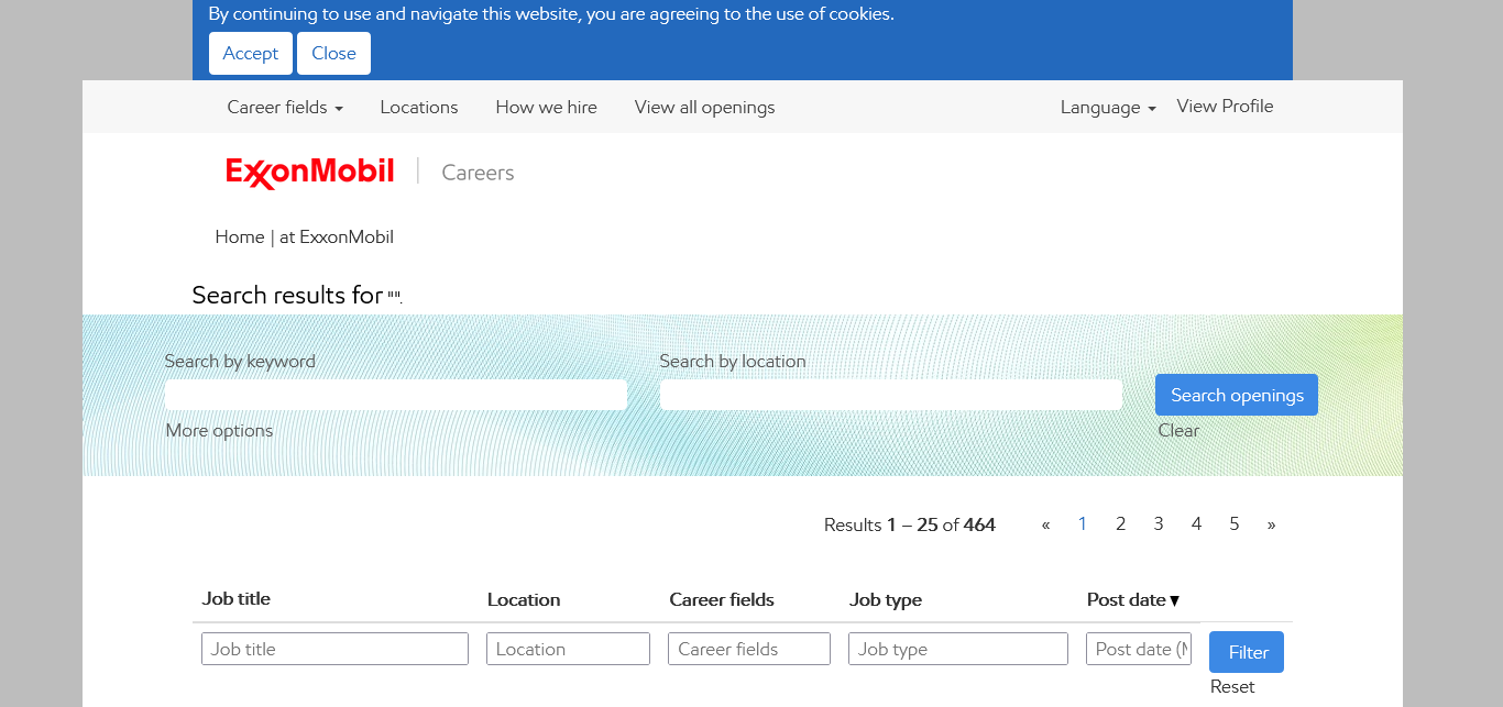 Exxon Mobil Corporation 477 https://jobs.exxonmobil.com/search/?createNewAlert=false&q=&locationsearch=&optionsFacetsDD_department=&optionsFacetsDD_shifttype=&optionsFacetsDD_country=