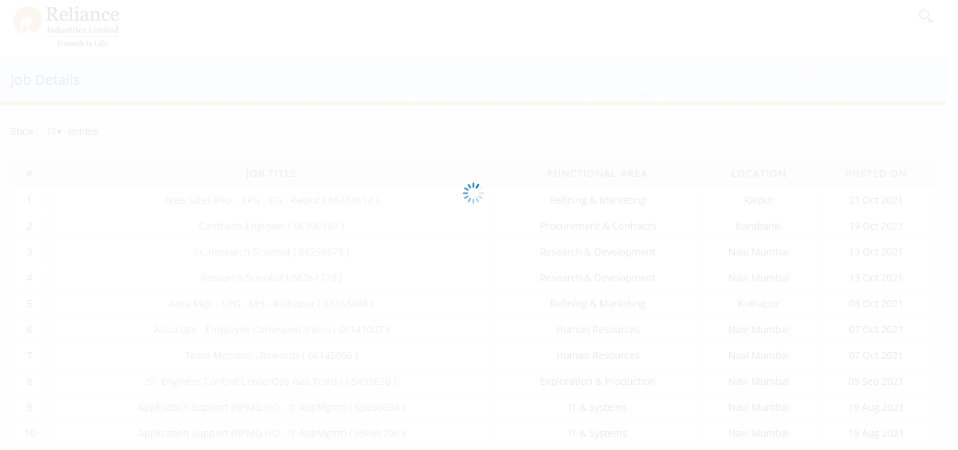 Reliance Industries Limited 6 https://careers.ril.com/frmJobSearch.aspx?func=w+cpdiT6wL4=&loc=/wASbQn4xyQ=&expreq=/wASbQn4xyQ=&flag=/wASbQn4xyQ=