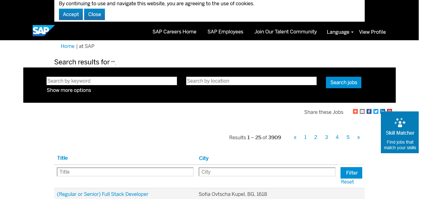 SAP SE 3901 https://jobs.sap.com/search/?createNewAlert=false&q=&locationsearch=&optionsFacetsDD_department=&optionsFacetsDD_customfield3=&optionsFacetsDD_country=