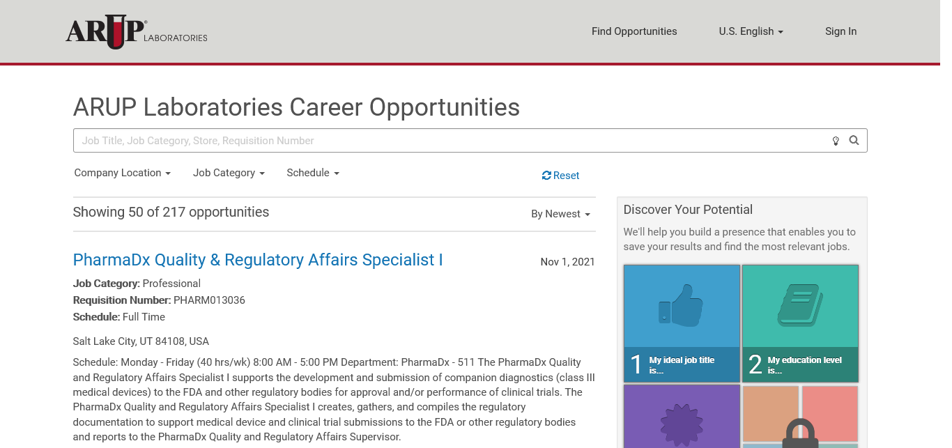 Arup Laboratories 217 https://recruiting2.ultipro.com/ARU1000ARUP/JobBoard/62cc791d-612e-42e6-909f-0de27efe2038/?q=&o=postedDateDesc