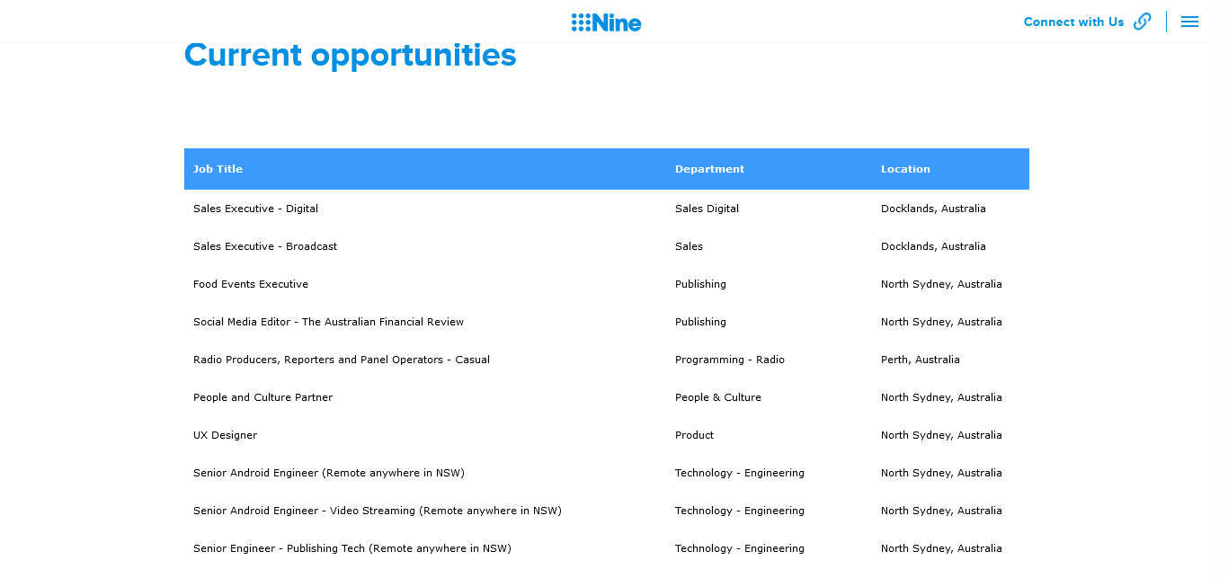 Nine for brands 98 https://www.nineforbrands.com.au/about/careers/#CurrentOpportunities