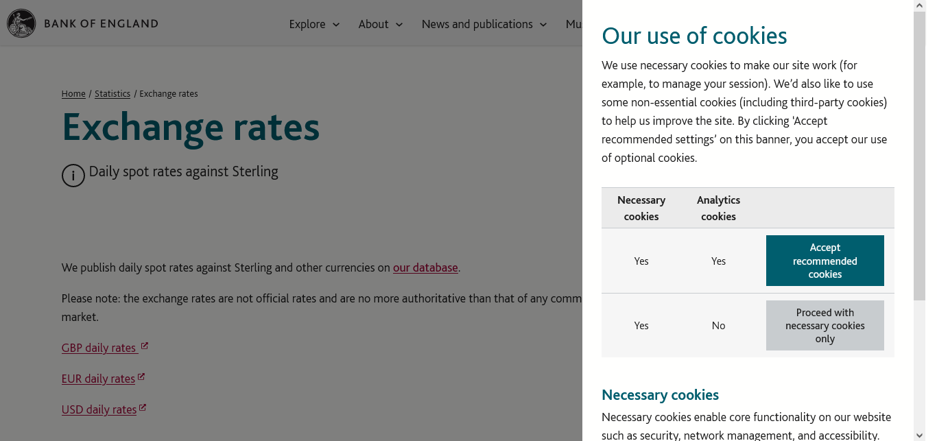 Bank of England https://www.bankofengland.co.uk/statistics/exchange-rates