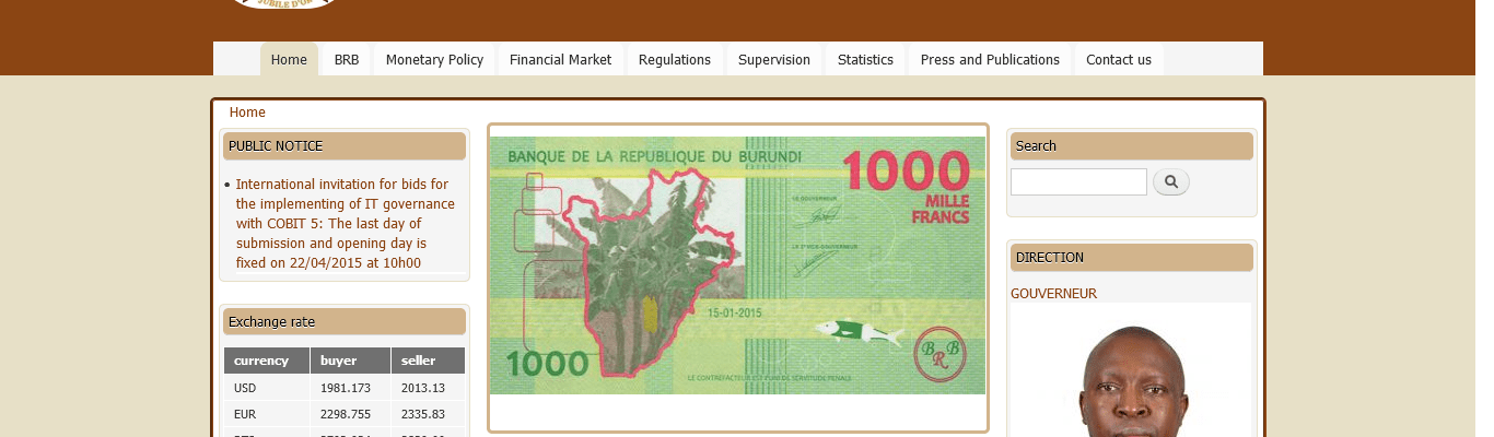 Bank de la Republic du Burundi https://www.brb.bi/en/node