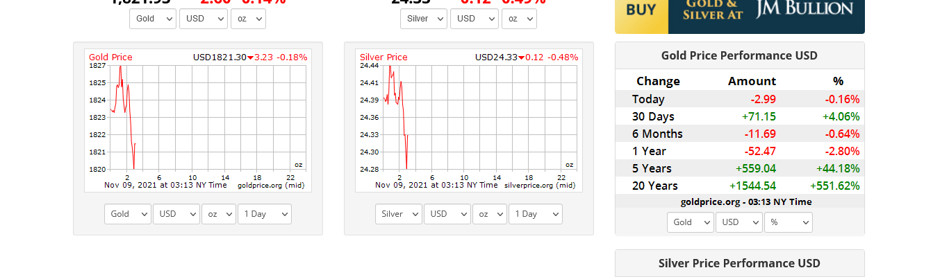 Gold, Silver and Metal Prices – Updated 9th November 2021 9:11 GMT-1