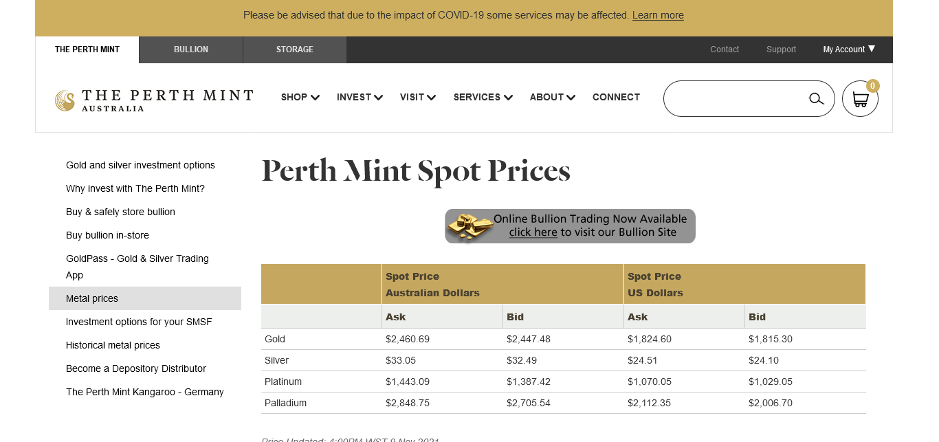 The PerthMinth https://www.perthmint.com/metalprices.aspx