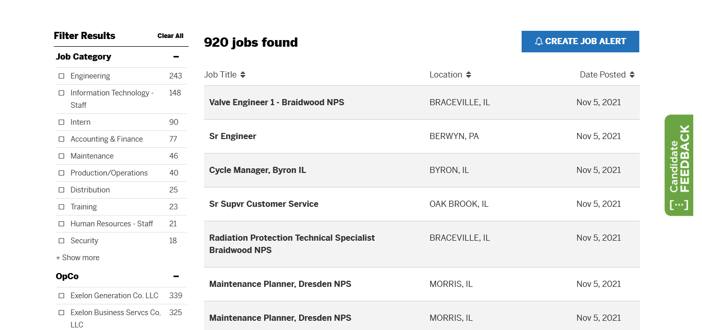 Exelon Corp 897 https://jobs.exeloncorp.com/jobs/search?q=&location=#the-results