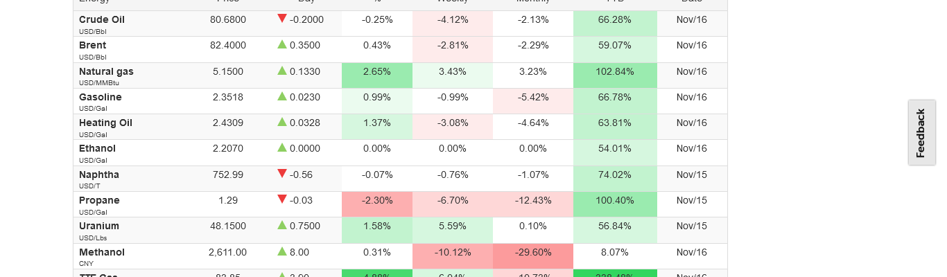 Commodity Prices – Updated 16th November 2021 21:50 GMT-1