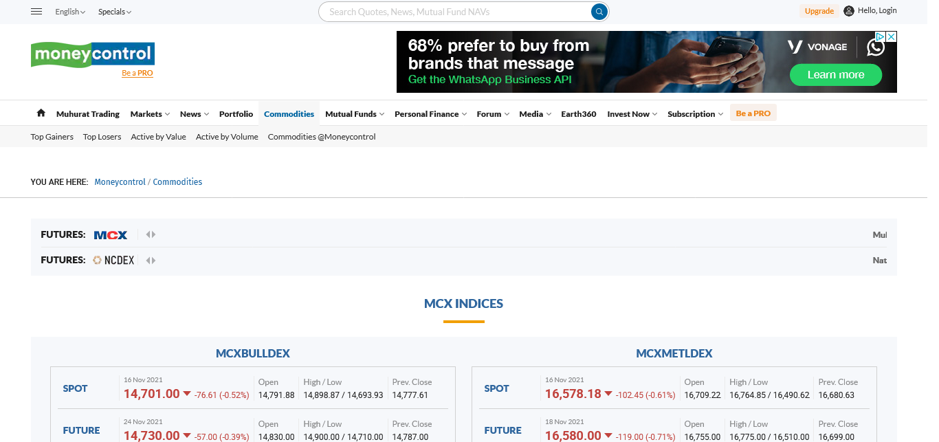 MoneyControl https://www.moneycontrol.com/commodity/