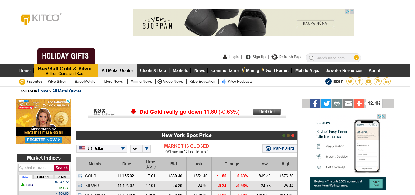 KITCO https://www.kitco.com/market/