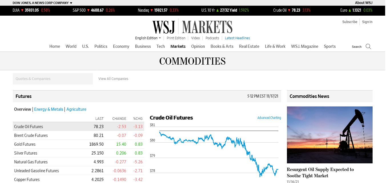 WSJ https://www.wsj.com/market-data/commodities
