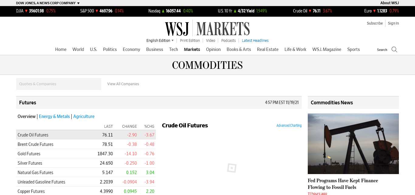 WSJ https://www.wsj.com/market-data/commodities