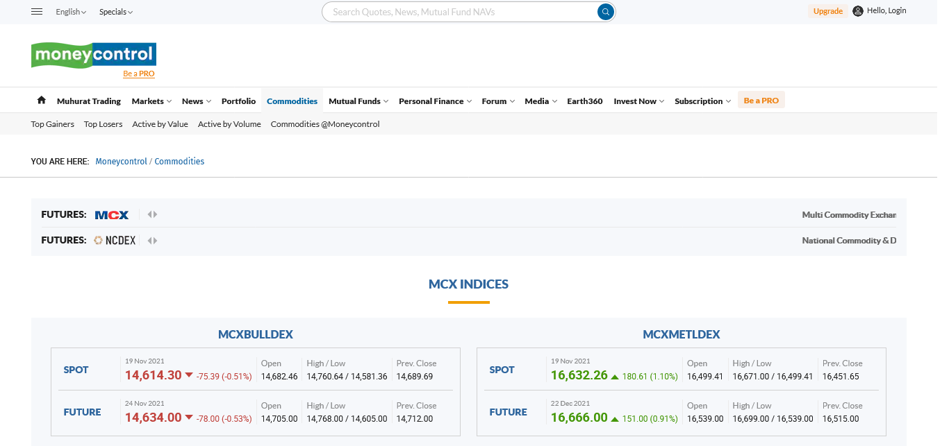 MoneyControl https://www.moneycontrol.com/commodity/