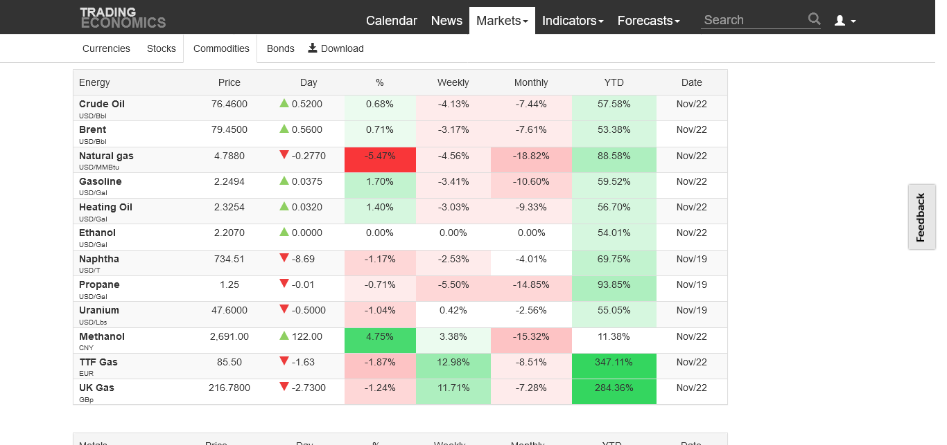 Commodity Prices – Updated 22nd November 2021 22:12 GMT