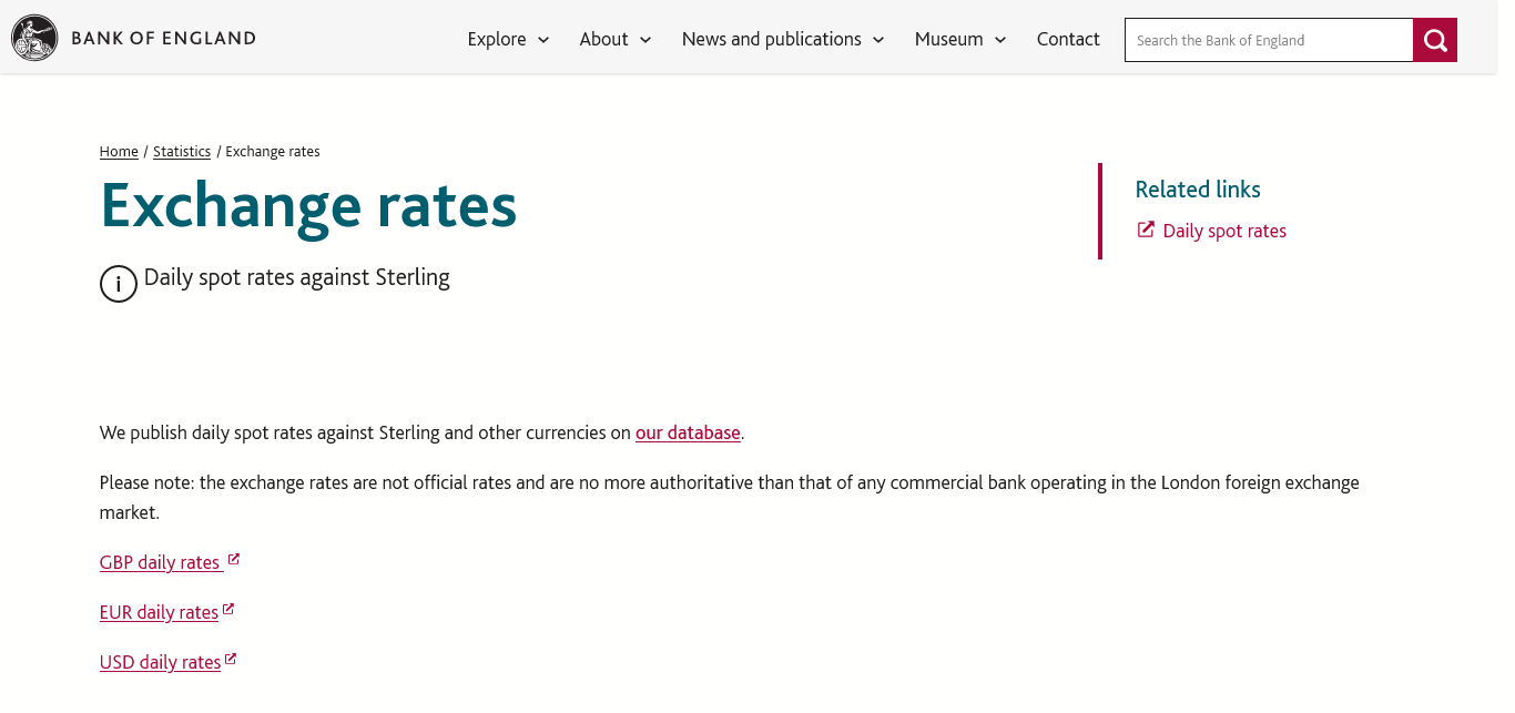 Bank of England https://www.bankofengland.co.uk/statistics/exchange-rates