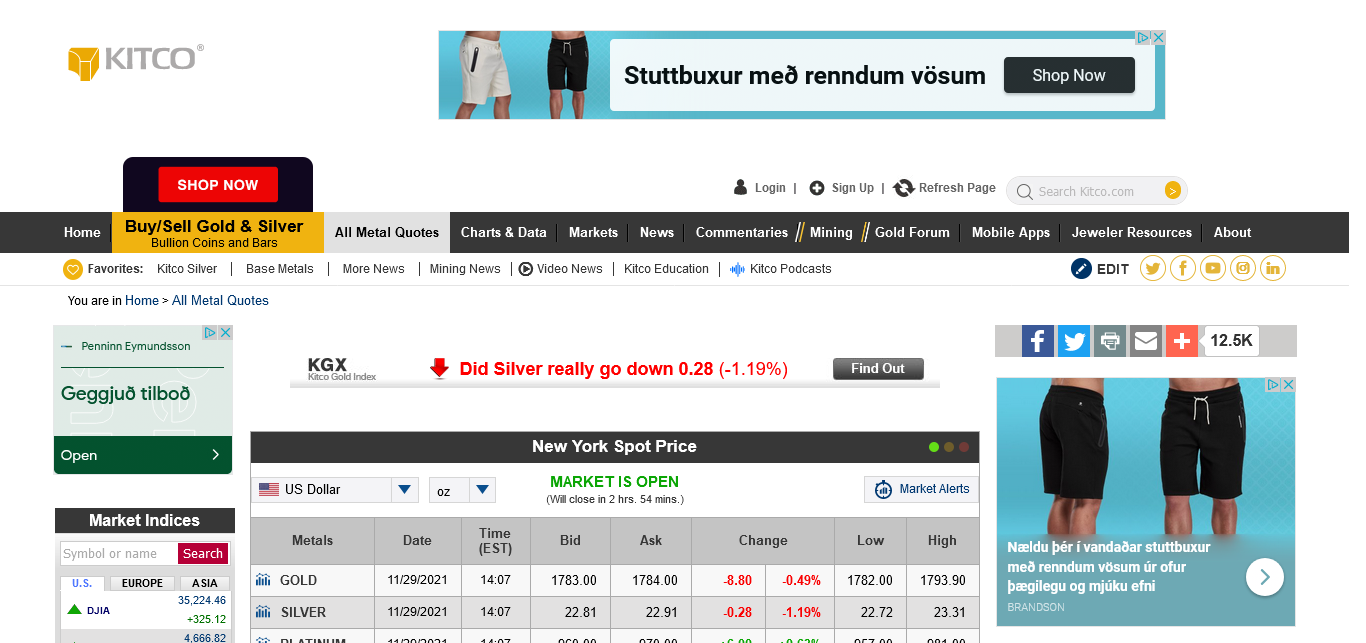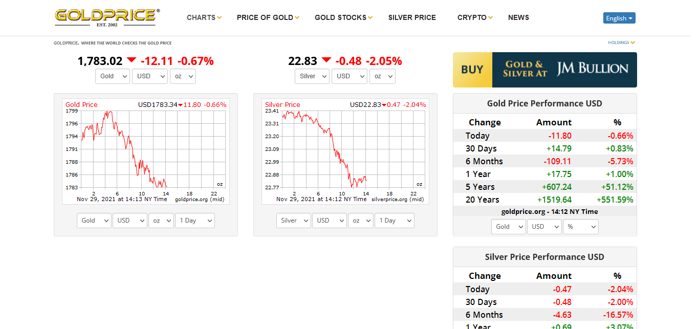 Gold, Silver and Metal Prices – 20:15 GMT 29th November 2021