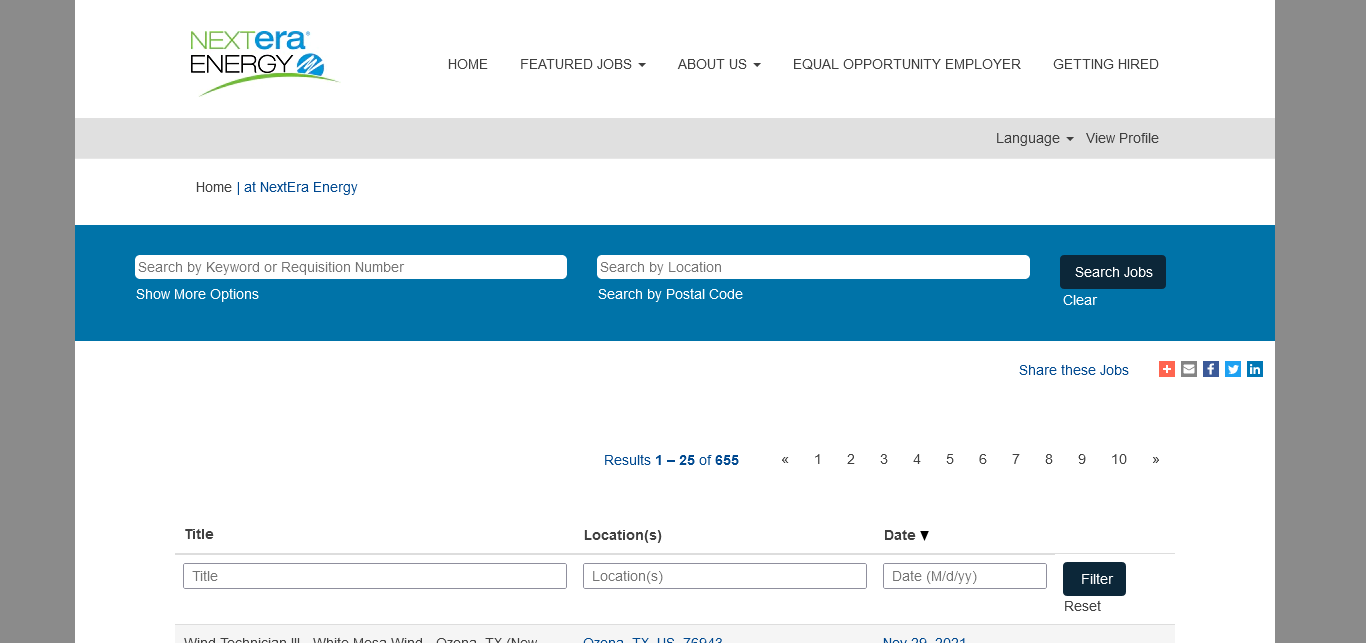 NextEra Energy 657 https://jobs.nexteraenergy.com/search/?searchby=location&createNewAlert=false&q=&locationsearch=&geolocation=&optionsFacetsDD_customfield1=&optionsFacetsDD_customfield2=&optionsFacetsDD_customfield3=