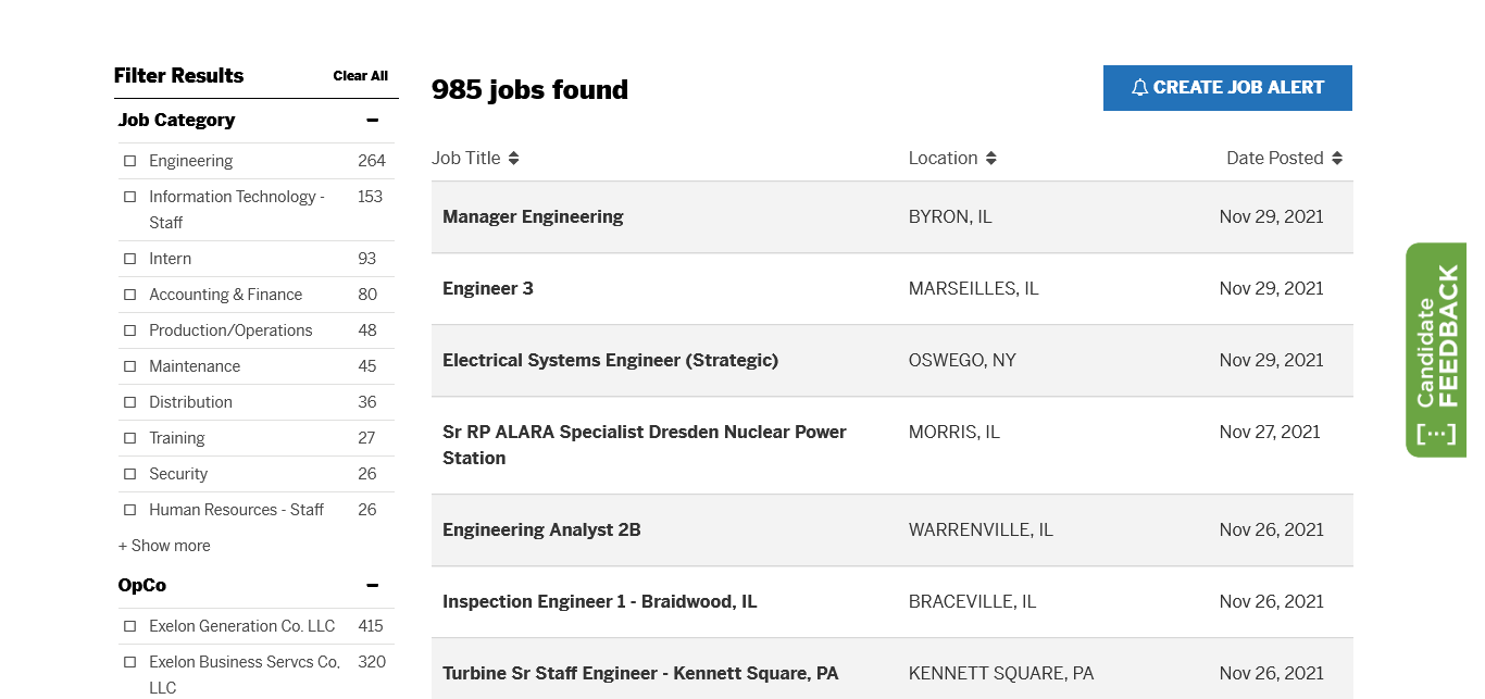 Exelon Corp 897 https://jobs.exeloncorp.com/jobs/search?q=&location=#the-results