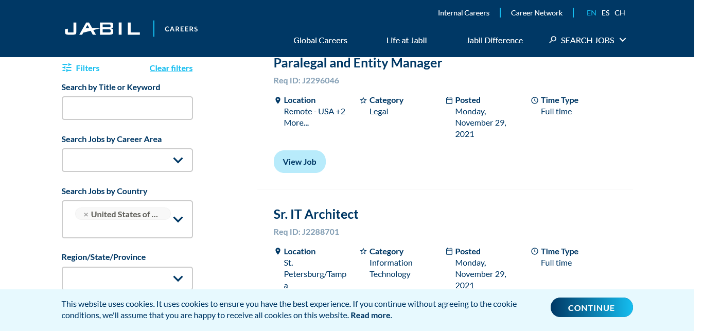 Jabil 653 https://careers.jabil.com/en/jobs/?search=&country=United+States+of+America#results