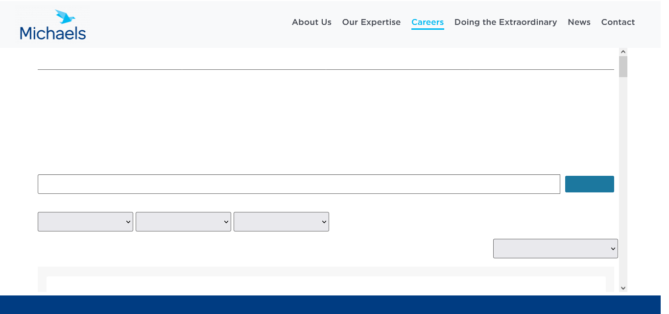 The Michaels Organization 110 https://careers-tmo.icims.com/jobs/search?mobile=false&width=1321&height=500&bga=true&needsRedirect=false&jan1offset=-300&jun1offset=-240