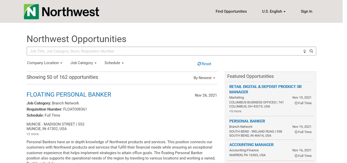 NorthWest Bank 154 https://recruiting.ultipro.com/NOR1002NWSAV/JobBoard/bf8580a6-c177-4bd6-9c3d-ccd66f56cb4b/?q=&o=postedDateDesc
