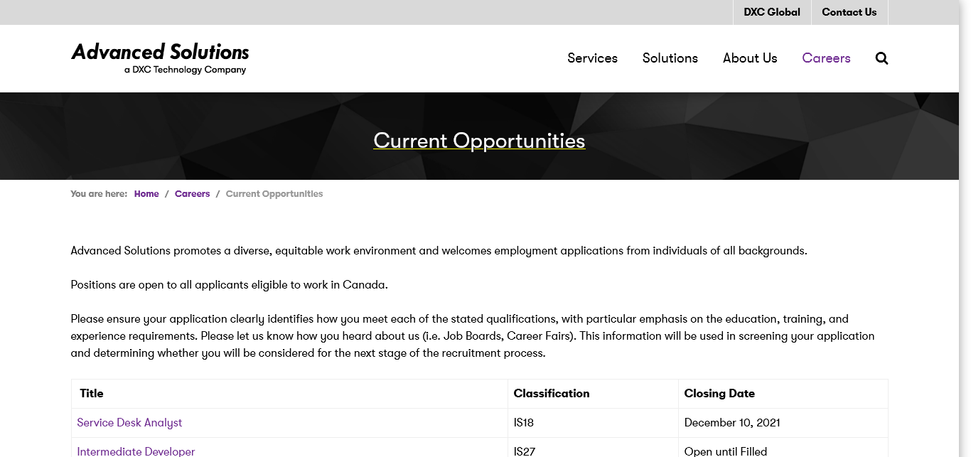 Advanced Solutions 6 https://dxcas.com/index.php/careers/current-opportunities