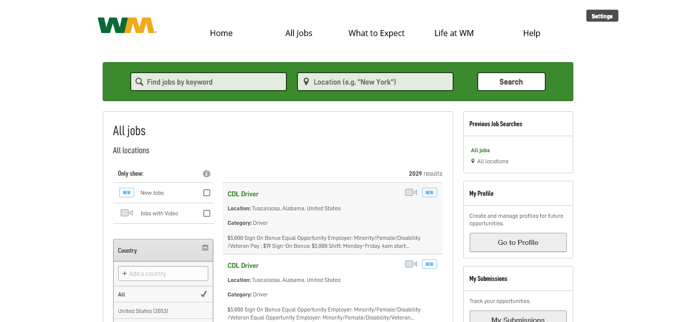 Waste Management 2,063 https://careers.wm.com/jobs/search/3910670