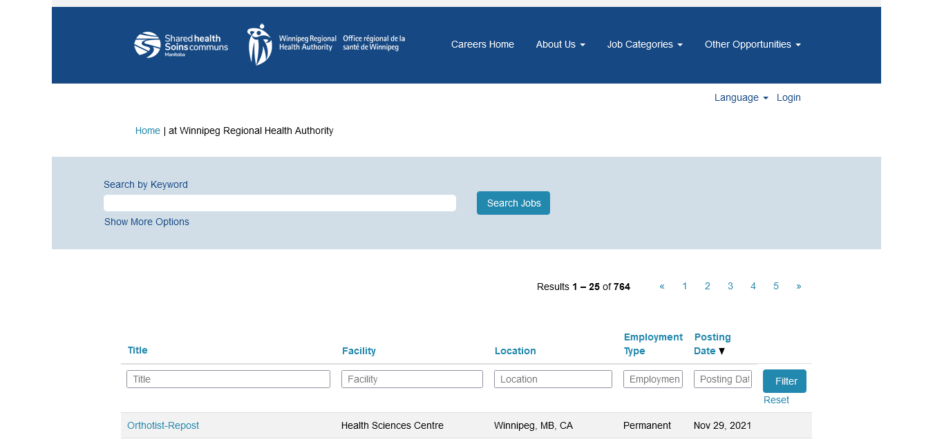 Shared Health 708 https://careers.wrha.mb.ca/search/?createNewAlert=false&q=&optionsFacetsDD_facility=&optionsFacetsDD_customfield2=