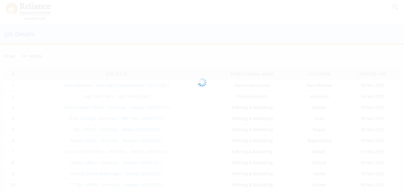 Reliance Industries Ltd 15 https://careers.ril.com/frmJobSearch.aspx?func=w+cpdiT6wL4=&loc=/wASbQn4xyQ=&expreq=/wASbQn4xyQ=&flag=/wASbQn4xyQ=
