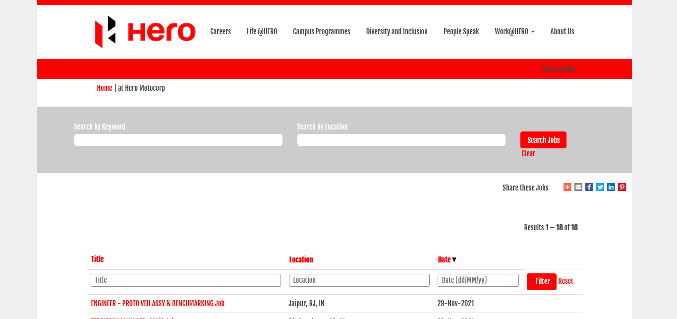 Hero MotoCorp Ltd 11 https://jobs.heromotocorp.com/search/?createNewAlert=false&q=&locationsearch=