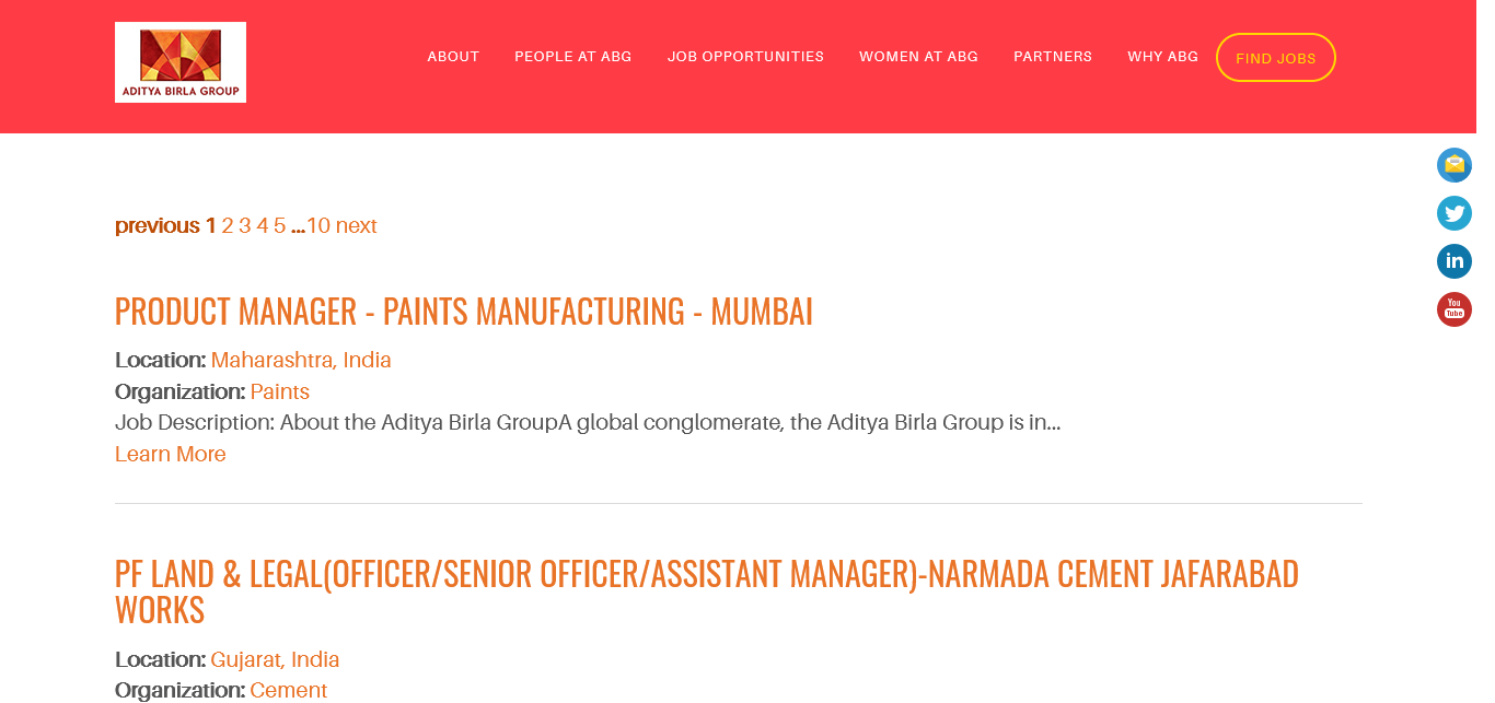 Aditya Birla Group 32 https://careers.adityabirla.com/jobs/search?q=&location_country=India&Unit_Bussiness=&JobField=&experience-level=&page=1