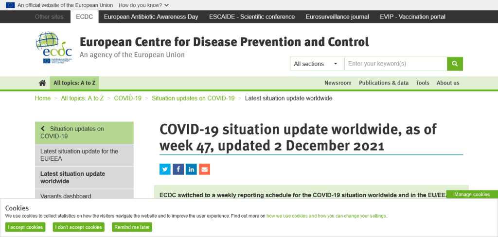 European Centre for Disease Prevention and Control https://www.ecdc.europa.eu/en/geographical-distribution-2019-ncov-cases