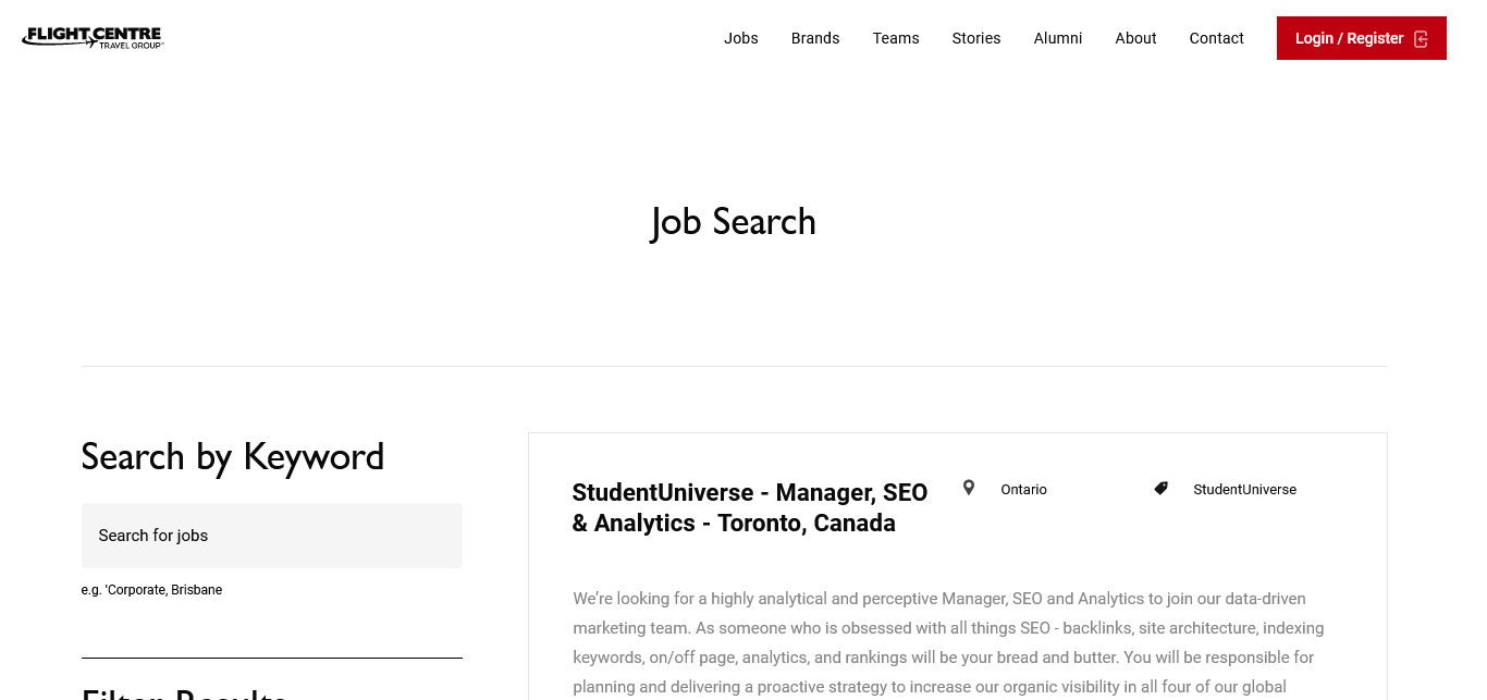 Flight Centre Travel Group 260 https://careers.fctgcareers.com/cw/en/listing/?_ga=2.167017981.297146576.1633688054-1226246167.1633688054