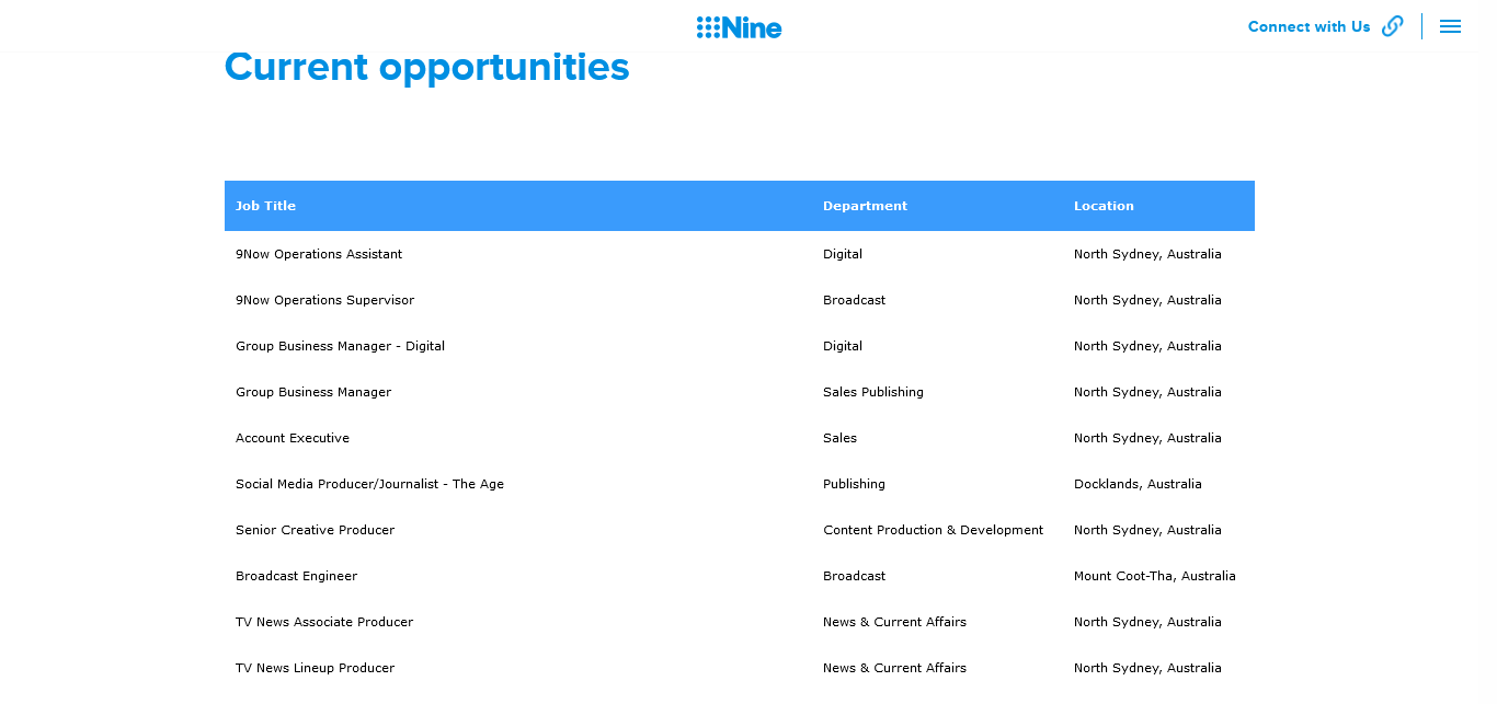 Nine for brands 98 https://www.nineforbrands.com.au/about/careers/#CurrentOpportunities