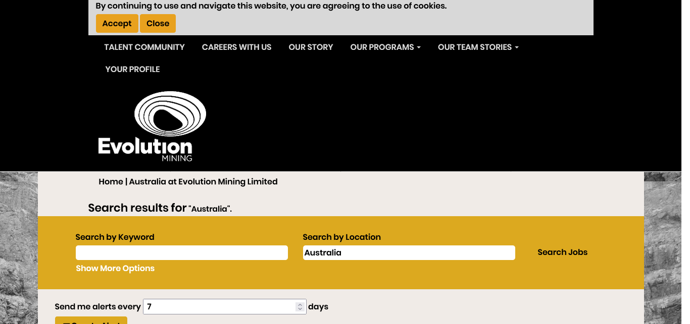Evolution Mining 21 https://careers.evolutionmining.com.au/search/?createNewAlert=false&q=&locationsearch=Australia&optionsFacetsDD_country=&optionsFacetsDD_location=&optionsFacetsDD_city=&optionsFacetsDD_state=&optionsFacetsDD_customfield1=&optionsFacetsDD_customfield2=