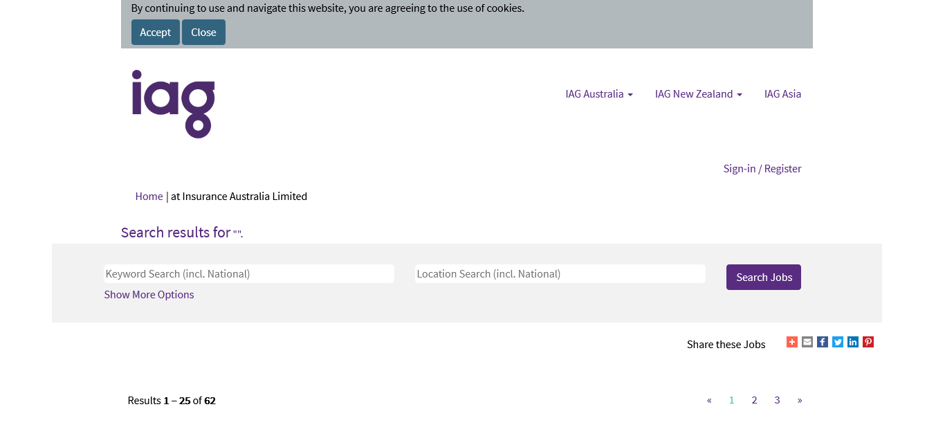 Insurance Australia Group 62 https://careers.iag.com.au/search/?createNewAlert=false&q=&optionsFacetsDD_customfield3=&optionsFacetsDD_customfield5=&locationsearch=