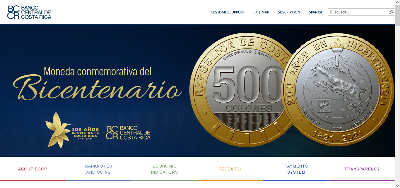 Banco Central De Costa Rica https://www.bccr.fi.cr/en/SitePages/Home.aspx
