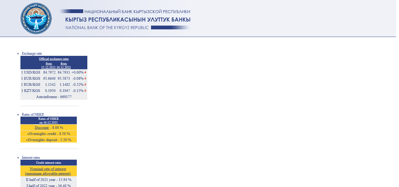 National Bank of the Kyrgyz Republic https://www.nbkr.kg/getservice.jsp?lang=ENG