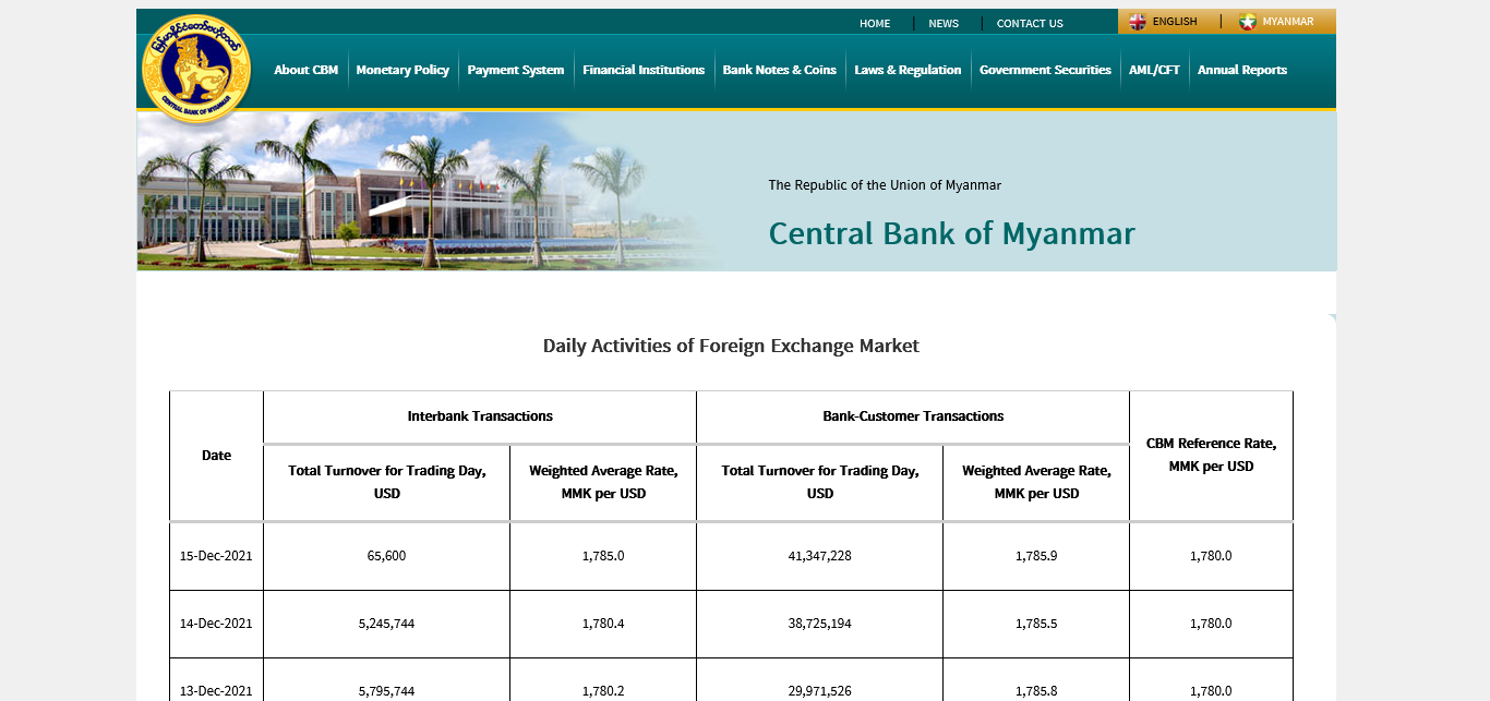 Central Bank of Myanmar https://www.cbm.gov.mm/foreign-exchange-market