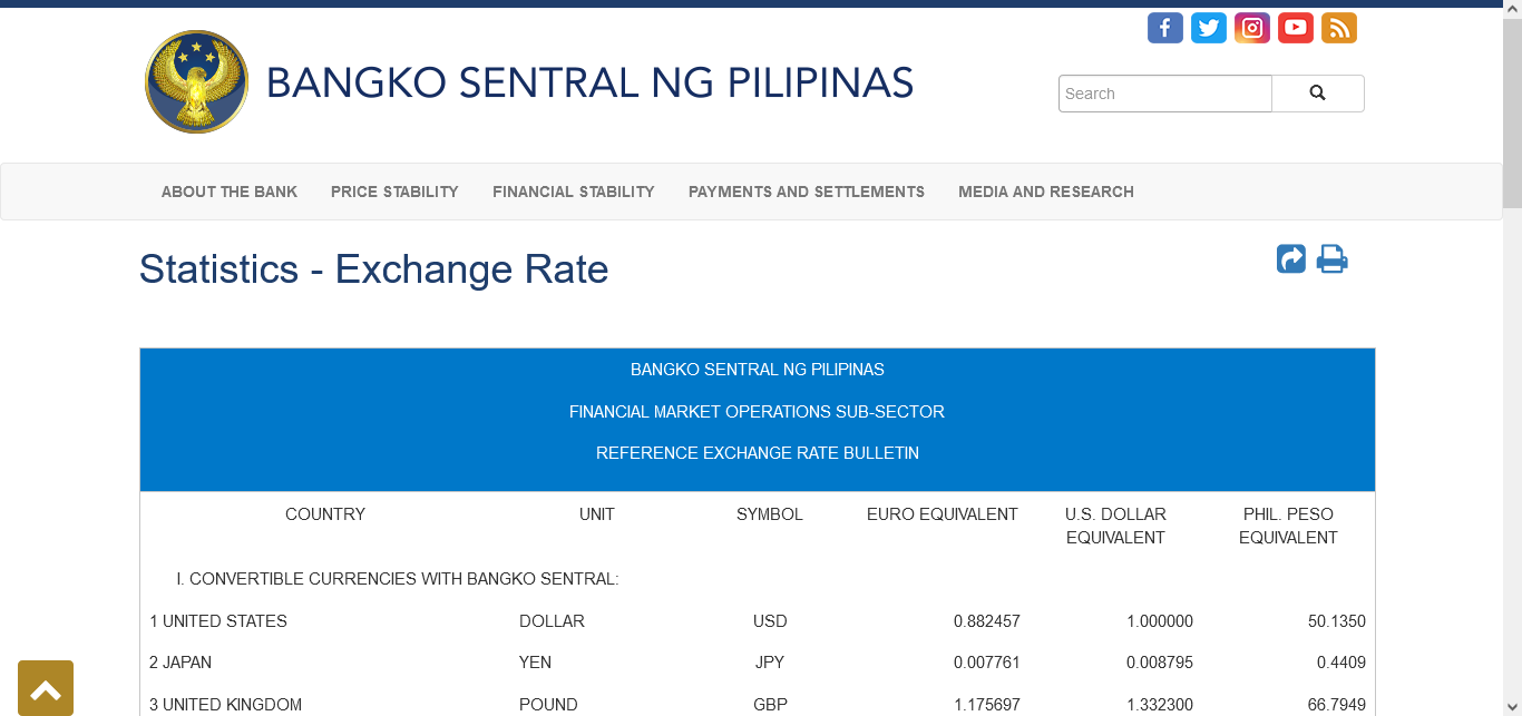 Bangko Sentral NG Pilipinas https://www.bsp.gov.ph/SitePages/Statistics/ExchangeRate.aspx